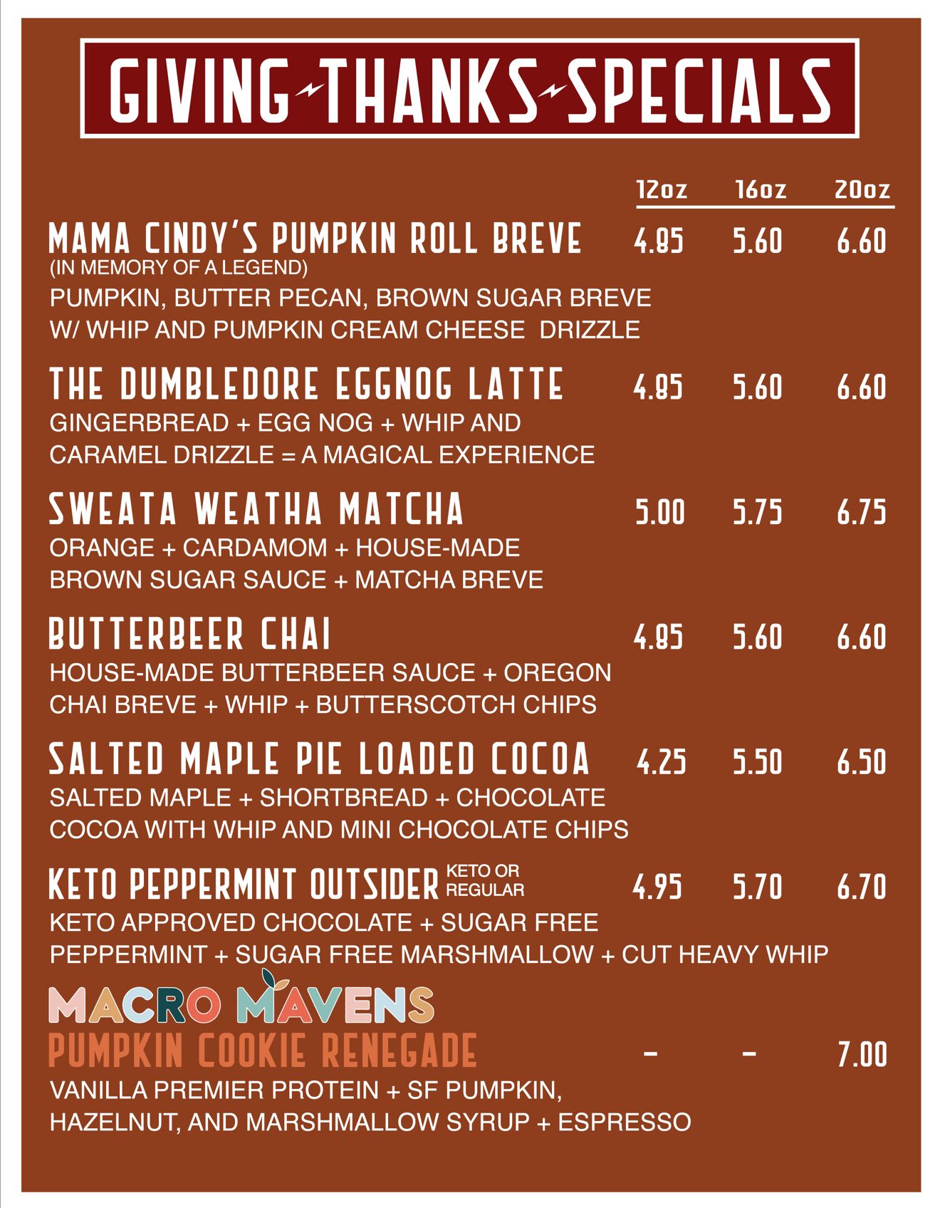 *NOT ALL SPECIALS ARE AVAILABLE YEAR ROUND. DRINK TOPPERS ARE ONLY OFFERED DURING SPECIALS' CURRENT MONTH.